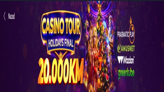 Meridianbet je za kraj godine pripremio posebnu kazino promociju koja okuplja najbolje slotove i najhrabrije igrače. Casino Tour Holidays Final donosi priliku da se osvoji ukupno do 20.000 KM, a sve se vrti oko jednog ključnog momenta – najvećeg osvojenog multiplikatora u jednom spinu.