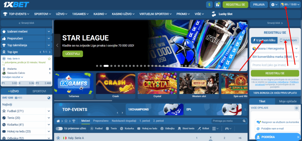 Registracija na online kladionici 1xBet je jedna od najednostavnijih što se tiče online kladionica.