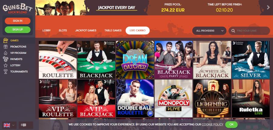 Gunsbet kazino ima odličnu ponudu igara u svom kazinu uživo. Ovde možete izabrati jednu od više od 100 ponuđenih igara.